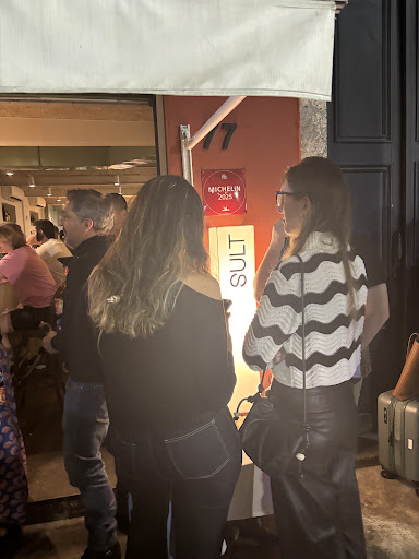 My partner and I were fortunate enough to dine at this restaurant as walk-in customers and the wait was short, which I attribute to the time because the line was very long when we departed the restaurant. The restaurant was full during our time at the restaurant and tables quickly filled up as people departed. Clearly, adult is popular. The restaurant felt like any nice and trendy restaurant in New York City. It had a modern, trendy city vibe full of well dressed people of means. It felt slightly pretentious but not stuffy and outright exclusive. The vibe was a mix between established artsy-type people, influencer types with plastic surgery, yuppy couples/families, and people who didn’t appear to put on airs. The overall vibe is young, metropolitan, stylish, and upper class.