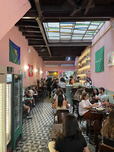Os drinks são ótimos, e tem um preço muito muito bom. Das comidinhas pedimos os ovos de codorna coloridos, picles, risoles de língua e pão de queijo frito. Todos bons, nenhum incrível, mas tudo bem feito. Ainda dividimos um principal de sobrecoxa desossada e canjiquinha. A canjiquinha estava deliciosa e a sobrecoxa, frita, estava ok. O atendimento é muito simpático, mas pouco consistente. Trazem os pratos sem trazer talheres, demoram para trazer os talheres, passam sem olhar, ou seja, não valem os 12% de serviço que cobram no momento. Mas ainda assim foi uma...