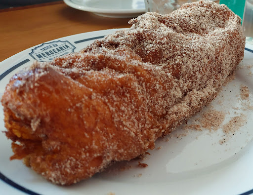Para sobremesa, pedimos um Pastel de amêndoas (R$14,90), que não agradou a nenhum de nós 2, e uma Rabanada tradicional (R$22,90) que é enorme e serve bem 2 pessoas. A calda de vinho do porto tem um azedinho bem interessante e que combina com o doce da rabanada.