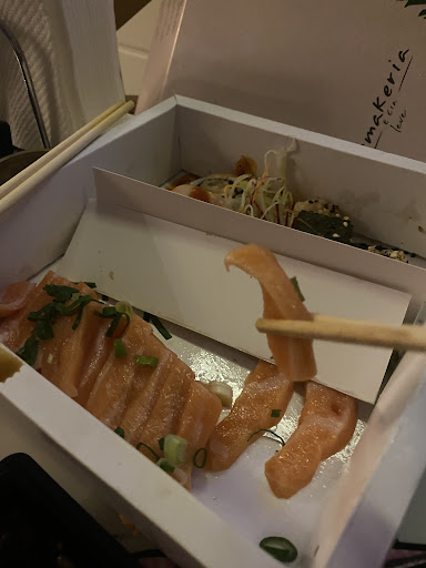 Além disso, a apresentação era feia, o que deixava mais obvio o tamanho ridículo de cada peça, claramente mal cortada por conta disso. A qualidade do peixe tbm era ruim, o polvo e o haddok estavam borrachudos e, novamente reforçando, de tamanho insultante. As comidas quentes vinham frias, o que era uma decepção pois eram as únicas coisas comestíveis. Tirando shitake e o shimeji que estavam extremamente enjoativos. De verdade foi uma odisseia comer esse rodízio, me senti o próprio Sísifo comendo cada peça como uma tarefa interminável. Mas gastei 159,90 e isso não é pouca merda pra mim, então tive que continuar pra não sair com fome.