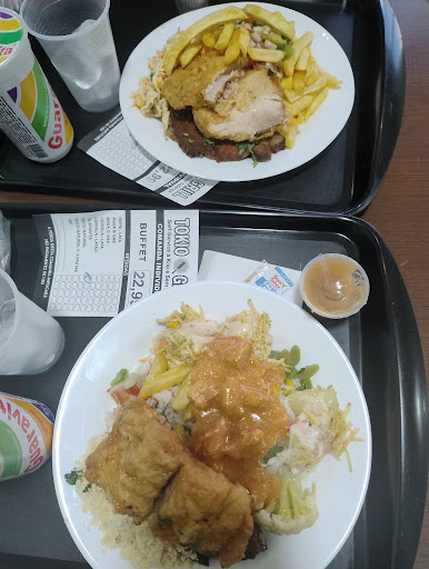 Read moreLugar confuso, onde não tem uma placa avisando se um lado é selvi service ou balança, comi lá a funcionária esperou eu pegar nos dois lados pra dizer que um lado era sem balança e o outro com balança, tive que pesar a comida sendo que a maioria da comida que eu peguei era sem balança tornou-se balança só por causa de dois molhos, ainda me negaram carne porque se eu pego ia ter que pesar novamente valor 31,00 reais no Bananinha pego de tudo que é lado, churrasco e suco e...