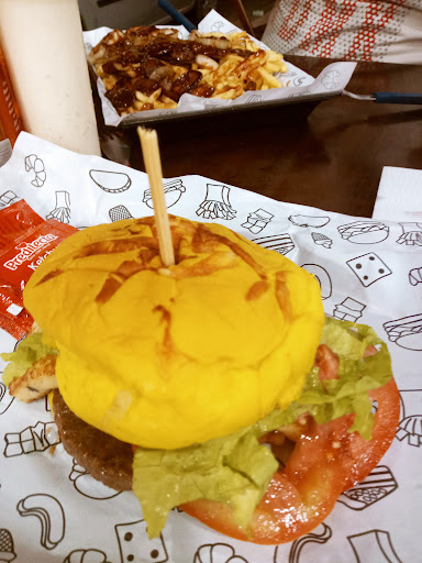 Fui num domingo a noite e estava absurdamente cheio. Notoriamente os garçons estavam sobrecarregados e não conseguiam dar a atenção devida aos clientes. Principalmente os novos como eu. O ambiente não é sofisticado, nem muito elaborado, mas é funcional. Com mesas externas e outras poucas internas. Havia muitas famílias e amigos lá. Super descontraído. O lanche em si tem a qualidade muito boa !! Pedimos o combo de hambúrguer simples para 5 pessoas, vinha : 5 X tudo, nuggets e fritas. Alimentou 3 adultos e 2...