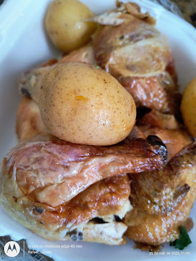 NAO PEÇAM... Falam que o frango tem aproximadamente 1,5 kg, o que eu pedi só tinha 880 grs porque tinha 3 batatas COZIDAS. O FRANGO é PEQUENO... o arroz, pior que de hospital, a maionese doce e sem sabor, o molho a campanha velho e a farofa, é o menos pior.