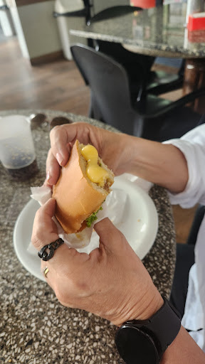 Read moreFomos na padaria hoje pela manhã Meu esposo pediu um café e sentamos nas mesas que tem do lado de fora . Tinha uma atendende atrás do balcão um pouco mais senhora e umas duas sentadas na cadeira conversando no balcão Pois bem pedimos e sentamos. Sem problemas de irmos pegar o café no balcão. Porém enquanto estávamos sentados ,a atendente que colocou o café virou pra outra sentada e disse ( olha só que folga sentaram lá fora e vai ter que levar A outra veio trazer no mal humor. Resumindo não volto mais...