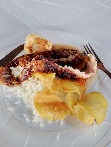 O local abre apenas no almoço. A comida é gostosa, especialmente o churrasco. Gosto dos diferentes bolinhos que são servidos durante a semana. O serviço pode ser melhorado com uma comunicação mais discreta entre o salão e a cozinha. Frequentemente vou ao restaurante, e noto que a equipe sempre busca deixar as mesas limpas assim que alguém as desocupam, mas talvez um membro a mais na equipe seria suficiente para tornar esse serviço mais eficiente em...