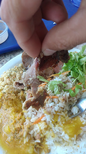 Sem sal, sem tempero, umas raspa de churrasco no PF e de frente tem outro restaurante self service a vontade por 19,00 e aqui o PF 15,00... Se eu tivesse visto antes. Não tinha comido aqui... Affffff .. ffeijao veio só o cheiro... Seloko .. volto nunca mais ... Não recomendo. Nota ZERO. Ainda cobra o gelo e o limão... Vtc... Exploração... Só vai os apressado, e pela propaganda, pessoas que não se alimentam todos os dias são a maioria .. comida eh péssima... R$1,50 de gelo e limão.... O cúmulo do absurdo!!!!! Devia fechar...