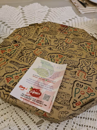 Read moreLugar extremamente agradável, simples e aconchegante, mas o melhor é a pizza, massa leve, fina e recheios na medida certa, ótimas opções no cardápio. O preço é razoável, poderia ser mais em conta, mas o sabor supera este detalhe! Atendimento atencioso! Voltarei sempre ! Segunda impressão: Voltamos na Amicci recentemente na verdade, fomos mais 2 x para constatar, e infelizmente achamos que a pizza deixou a desejar... as duas x a pizza chegou fria na mesa, a massa estava fria, o queijo parecia ter esfriado e endurecido. É só tinha a nossa mesa para atender no local. Ficamos tristes pois foi a segunda x, e já tínhamos inclusive reclamado do mesmo inconveniente. O ambiente é lindo aconchegante e o...