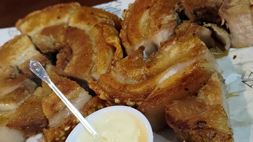 Pegamos uma porção de panceta por acaso, pois era um pedido de outra pessoa que foi feito errado e nós aceitamos comprar, estava muito suculenta e saborosa. Combinou bem com o chopp. Os molhos de mostarda e mel e o cream são fortes num bom sentido, temperados na medida certa.