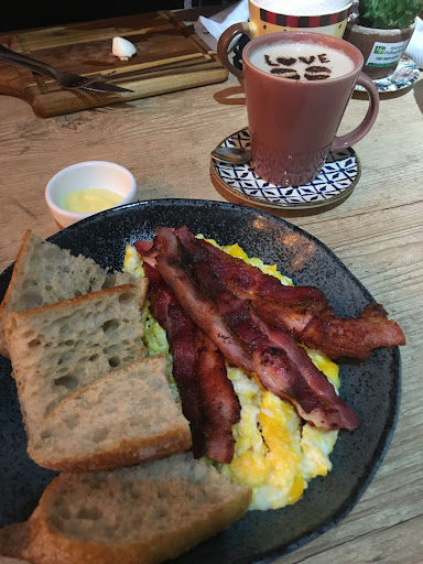 Read moreOs pães da padaria são maravilhosos, recomendo muitíssimo. Se for à padaria pela primeira vez recomendo deixar seu contato para receber o cardápio das fornadas de cada dia e fazer a reserva pelo WhatsApp mesmo, porque os pães são bem concorridos. Taí um ponto negativo, pois se não fizer reserva corre o risco de ficar sem, ou seja, se vai a padaria pela primeira vez e não sabe disso pode não encontra pão! Nesse quesito, poderia melhorar, na quantidade ofertada de pães! Quanto a parte de cafeteria eu também recomendo muitíssimo! O atendimento é muito bom e as opções com os pães artesanais são muito saborosas, inclusive as bebidas! Voltei a cafeteria ultimamente e gostei muito dos três pedidos que fizemos, todos muito bons! Continuo...