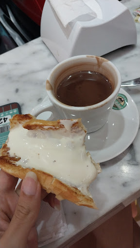 Compro os bolos sempre neste lugar. Porém fomos grosseiramente importunado por um sujeito mudo que insistentemente queria que comprássemos cigarros para ele. Chegando muito perto, tocando nas pessoas e a loja não protegendo seus consumidores. Que situação mais irritante. Fomos para passarmos um momento juntos , eu e meu esposo e vivemos essa grosseria dentro da loja. Fora o atendimento que nenhuma das atendentes é capaz de sorrir, todas parecem de mal humor ou sem dentes. Como o bolos são deliciosos continuarei indo, mas pelo amor melhores esses atendimento e não permitam esses "noias" dentro da padaria. Que...