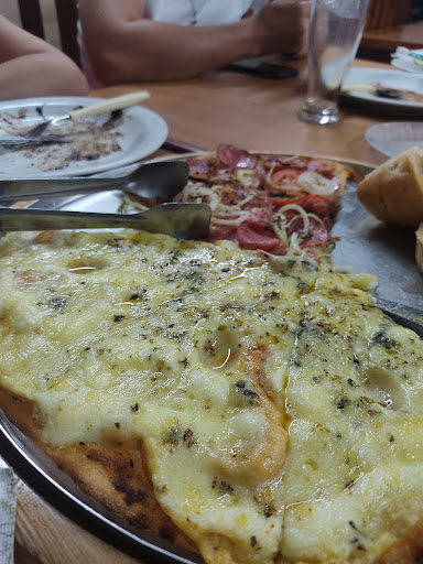 300 sabores de pizzas, 99% são iguais, só se retira ou acrescenta algum ingrediente. Só para atrapalhar na escolha!. Das 300, 150 tem atum ou frango. Pedido no delivery muito demorado. Se for esperar entregarem, pode esperar sentado. Devem ter poucos entregadores e muitas entregas. Para comer no local muito demorado também. Desanima. Mas as pizzas até que são boas. A de costela é bem saborosa, de frango com catupiry também. É o que tem na cidade, não se...