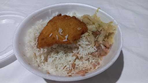 Espetos de carne e frango muito saborosos e um excelente bolinho de bacalhau!