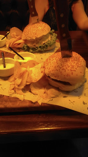 Hamburgueria sensacional! Os pratos são uma delícia, de preços medianos(para quem está acostumado a ir em BK e MC, mas são ótimos levando em conta que é uma hamburgueria premium). O atendimento também é muito bom, fomos muito bem atendidos. O lugar é pequeno, poucas mesas e são bem juntas, então se quiser um local mais reservado, não sei se caberia. Mas o ambiente é muito acolhedor e muito gostoso, voltarei com certeza. Não lembro os nomes, mas eu comi um hambúrguer com abacaxi caramelizado e meu namorado comeu o hambúrguer do festival com cogumelos caramelizados. Os dois simplesmente sensacionais. Os lanches são grandes, pra quem está acostumado a comer pouco, é até muito. Vêm acompanhados de batata chips e a bebida é à parte. Não aguentei comer o lanche todo, mas também comi as batatas Chips que vieram. Os lanches e as porções vêm acompanhados de ketchup, maionese temperada e maionese de alho. O suco de morango com leite ninho estava muito bom, mas acho que poderia ter mais morangos. Saímos muito satisfeitos e voltaremos outras vezes para experimentar lanches diferentes. A única coisa que me decepcionou foi que o banheiro estava sem sabonete, sou bem apegada com higiene, então realmente isso tirou pontos na minha avaliação. Também é mal iluminado, apesar da ótima estética do restaurante que te traz conforto e comodidade com a baixa luz, acredito que o banheiro deveria ter boa e...