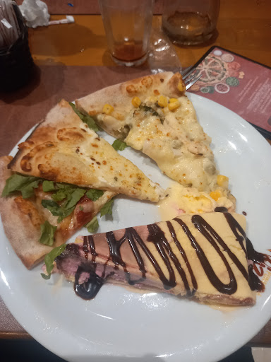 O melhor rodízio que já fui. Tem uma variedade incrível de pizzas e petiscos. Para quem acha que estou brincando, além das pizzas doces e salgadas, nas duas vezes que fui passaram oferecendo; Franguinho frito Batata frita Macarrão alho e óleo Pururuca Mini churros Banana frita Polenta frita e Lasanha (deveria ter a opção vegetariana) O atendimento é muito bom, só passei raiva com uma garçonete que quando pedi uma pizza salgada que estava passando ficou olhando para meu prato com cara de nojo por não ele estar sujo de pizza doce (lá geralmente oferecem trocar o prato). Uma sugestão boa era orientar o pessoal a não se restringir a passar pizzas doces só pra pra quem já está a mais tempo no rodízio, as vezes pessoas como eu chegam e já querem direto a pizza doce kkkkkk RECOMENDACAO DE SABORES PARA QUEM VAI IR A PRIMEIRA VEZ: pizza de mousse de maracuja e mousse de limão, simplesmente fantásticas!!! No dia do aniversário do meu namorado, tendo o documento em mãos ele pagou só metade do rodízio. O ambiente é meio barulhento por conta do playground das crianças, então se puderem recomendo sentar na...