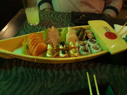 Ambiente: Ponto forte do local. Apresenta decoração diferenciada, com legítimos elementos japoneses. Dispõe de climatização adequada e bom espaço entre as mesas. Há cadeiras e bancos inteiriços. Estes últimos, apesar de mais confortáveis, ficam a uma distância maior do que o ideal em relação à mesa, deixando o visitante um pouco desconfortável. Há uma varanda ao ar livre, um bar e um espaço de brincar para crianças. O ambiente é apreciavelmente silencioso, com iluminação no nível ideal.