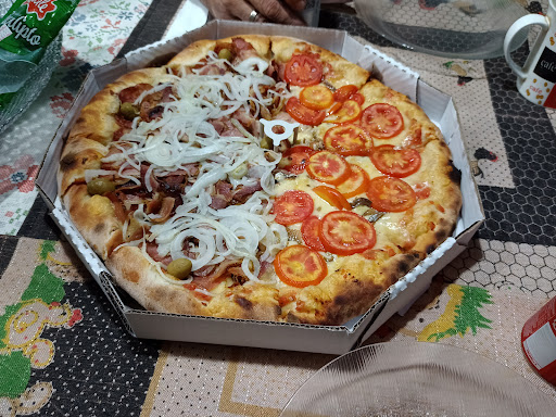 Fizemos o pedido de uma pizza meia calabresa com bacon e meia romana. A pizza estava ótima, super recheada, quentinha e nos agradou bastante. Recomendamos a casa para os apreciadores de uma boa pizza. Um ponto de melhoria desejável seria a implantação de um espaço para atendimento presencial no local, e não apenas delivery...