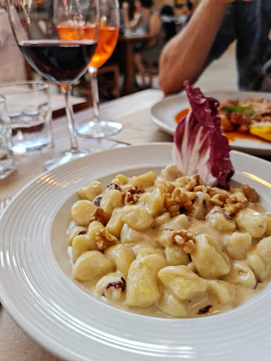 Fui no jantar. O ambiente era relativamente aconchegante. O teto do local permite ver as telhas de zinco. Imagino que seja bem quente durante o dia com sol. Os funcionários eram cordiais, mas aparentavam alguma tensão e, fora do contato inicial, depois ficavam desconectados necessitando serem chamados. A mesa era pouco apresentável com toalhas de papel. Enquanto escolhia, foi servido dois palitinhos de massa num copo de vidro, um petisco, até animador... O garçom perguntou se eu desejava água. Fiquei feliz pois achei que enfim, assim como acontece pelo mundo afora, a água já vem sendo oferecida, filtrada, gelada, gratuitamente... Mas enfim a máscara caiu e ele me trouxe apenas uma água engarrafada e sem gáz para completar a sensação de exploração. O chef, pelo menos trajado como tal, esboçou uma aparição na mesa, aproximou-se do local mas logo falou com outra pessoa e nem disse boa noite. Pedi um antepasto com pães e pates, pesto, manteiga, caponata... Incrivelmente pequeno... Os pães eram um mix de fatias indistinguíveis, aquecidas, alguns pãezinhos já feitos, tipo brioches de padaria e algumas massinhas tipo snacks. Nada que se parecesse com um crostini ou um bom e fresco pão italiano... E era pouco. Os acompanhamentos, quase miseráveis, no fundo de potinhos, eram até difíceis de pegar de tão pouco... Pois bem, vamos aos pedidos... Uma burrata. Obviamente a muçarela era o habitual. O pesto bastante comum, pouco generoso, rodeado por rodelas de tomate comum, sequer um italiano ou mini-tomates, mas sim tomate débora beirando mais para verde... Tive saudades do que faço em casa. O pãozinho, repeteco da cestinha já descrita anteriormente. Outros pratos, um nhoque com molho de gorgonzola, forte, salgado e a massa que carregava um pouco de gosto de farinha. Espaguete com pesto, sem grandes atrativos... Tentamos contato com o garçom para pedir queijo ralado, item obrigatório em mesas italianas, mas foi infrutífero... Não vou detalhar demasiadamente, mas não há uma grande inovação. Para quem é italiano e cozinha, nada de novo. Inclusive, o acabamento dos pratos não chega a carregar algum toque de beleza diferente. O preço, levando em conta estarmos em Botucatu e pelo oferecido, foi até alto na minha opinião. As bebidas, como sempre, tem preço exorbitante para um restaurante. Fui entusiasmado pelos comentários anteriores vistos aqui, mas fiquei decepcionado e continuarei fazendo a minha comida italiana, em casa.