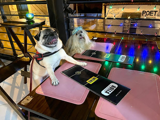 Além do salão interno, há um espaço externo coberto (que possui grades e vidros para segurança e uma parte aberta para ventilação) com mesinhas, bem gostoso para fazer as refeições ou comer um petisco na companhia dos dogs.