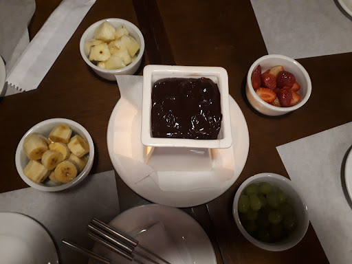 Read moreO valor do fondue vale à pena, e serve com sobra 4 pessoas. O abacaxi não estava muito maduro e estava azedo demais, e quando perguntamos se poderiam trocar por outra fruta, nos disseram que não poderiam, pelo valor gasto nas mesmas... não achei que a desculpa colou muito. No geral, o lugar é bem legalzinho, a equipe muito gentil e a comida boa. O ambiente, no entanto, não é do tipo que dá vontade de ficar muito tempo depois de terminar a comida... a música é meio repetitiva e se você for con muita gente, não dá para conversar muito. Tem alguns brinquedinhos que conseguem distrair bem as crianças, e um espaço...