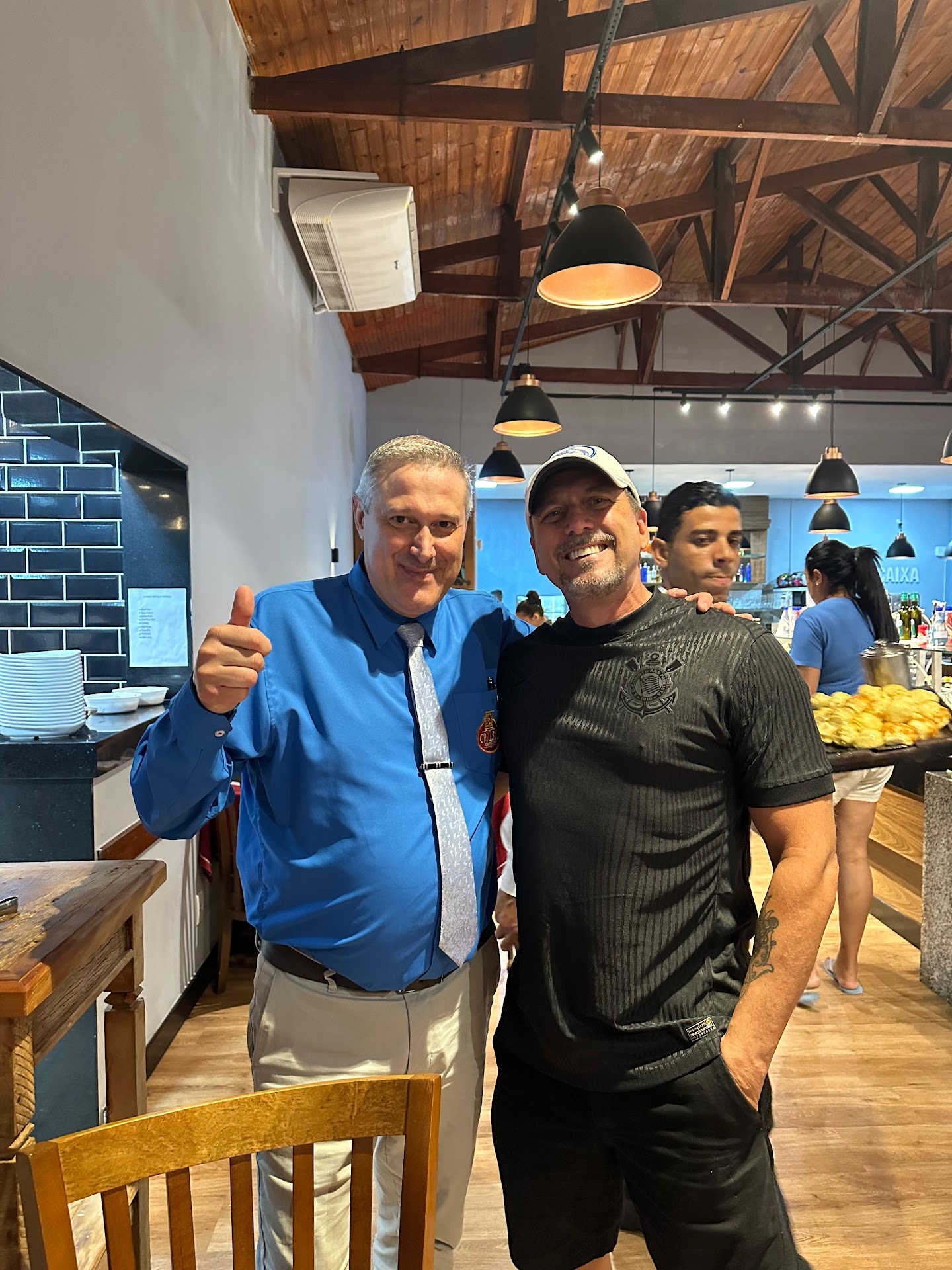Read moreNão sou de me manifestar porém no último domingo 29/06 fomos comemorar o aniversário de uma colega, um lugar bem bonito, organizado e com comida boa, porém o atendimento de dois funcionários deixaram muito a desejar, pedimos muitas vezes para vir picanha na nossa mesa porém o garçom que traz a picanha foi muito mal educado e o tempo inteiro meio que de deboche vinha na mesa ao nosso lado com picanha primeiro corte e para a nossa com picanha já bem passada e com alho, meu colega pediu picanha também ele só respondeu " depois vem " e o tempo inteiro vindo na mesa do lado, daí perguntei para um rapazinho que foi super atencioso, perguntei o porquê só estava indo picanha na outra mesa e na nossa não?, então ele nos respondeu que e meio que um "esquema" , se derem gorjeta pra ele a picanha vai o tempo inteiro na mesa, senão for cliente dele só vai comer as picanhas mais passadas e no alho, fiquei indignada, será que a casa não paga salario pra ele? Ou será se não repassa os 10% para os funcionários? Porque depois que meu colega pediu picanha, também pediu cordeiro que falam que e uma delícia, mais infelizmente não foi na nossa mesa, quando pedimos o cordeiro o rapaz só falou que depois viria e não veio, até parece que o rapaz da picanha falou pra ele não vir em nossa mesa, ficamos muito chateados pois viajamos de longe(quase 450km de distância), para no fim ainda passarmos por isso, um dia voltaremos e queria não ver mais esses funcionários que tem seus preferidos pra levar de tudo em uma mesa e em outra não, pois pagamos só de 10% mais de 56 reais, mais pagamos pelo atendimento de um dos garçons que esteve em nossa mesa e sempre querendo nos agradar, apesar dele ser apenas da bebida estava quase que o tempo inteiro pedindo as carnes pra gente, um cearense arretado e muito gente boa, espero que um dia volte e ele esteja em um cargo melhor, pois ele emuito educado e atencioso, seria um ótimo líder. Fora isso o buffet tava uma delícia, bem elaborado. Desde já agradeço a esse garçom. Não lembrei de perguntar o nome dele porém e um ótimo...
