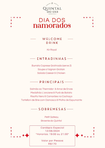Cardápio fechado, 3 opções de entrada, 4 opções de prato principal e 2 opções de sobremesa, por $170 por pessoa. Ok!