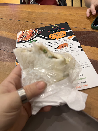 Optei por uma tapioca de frango com catupiry, uma combinação clássica que prometia um sabor autêntico. Minha escolha não poderia ter sido mais acertada! A massa da tapioca estava perfeitamente cozida, fininha e crocante nas bordas, exatamente como deve ser. Proporcionando um sabor marcante e delicioso.