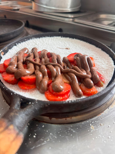 Além da tapioca principal, experimentei também uma de brigadeiro com morango, que era uma verdadeira tentação para os amantes de doces. O brigadeiro cremoso combinava divinamente com os pedacinhos de morango fresco, criando uma sobremesa irresistível.