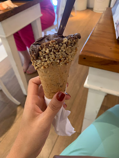 Em menos de 30 dias hj foi a segunda vez que fomos , eu e minha esposa , eu não queria ir, pois a primeira vez fiquei mais de 1 hora na fila , eu vi muita coisa errada , pessoal furando a fila para retirar o sorvete , maior muvuca , não tinha um funcionário para organizar a fila , mesas mal posicionaras , espaço não suporta o movimento, hj foi pior ainda , denovo quase uma hora na fila , nós éramos os próximos a ser atendidos , começou um cheiro de queimado , apagaram todas as luzes e pediram para todo mundo sair da loja , chegaram o pessoal da manuntencao e depois de mais 20 minutos começaram a atender denovo , e lá vai nos para o final da fila , depois de muito tempo e custo , chegou nossa vez , minha esposa pediu uma casquinha nova de pistache , pediram para esperar que iam preparar, mais 10 minutos , ela pegou a casquinha e não percebeu saiu ali na frente da loja ,e começou a derreter rápido Começou a cair no chão, sujou o vestido dela , maior transtorno , entrei na loja reclamar , o pessoal parece ser treinado para pedir desculpas e dizer que o tempo que ficou desligado a força dever ter derretido um pouco , atendentes nem para chamar o gerente ou responsável, se é que tem , nunca mais vamos voltar nesse lugar , pessimo, muito desorganizado e sem nenhum gerente ou uma pessoa na área externa para organizar , fora a vergonha com um sorvete derretendo inteiro , as meninas da loja da frente presenciaram é uma veio até ajudar , sendo que reclamei duas vezes na sorveteria e ninguém se propôs a fazer nada ! Fica a Dica para quem quiser ir nessa...