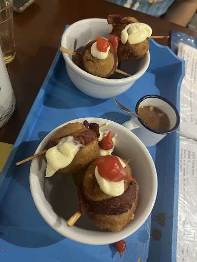 Para comer, fomos nas famosas coxinhas. Pedimos a de costela, a de carne com azeitona chilena e a chinesa. O ponto forte para nós foi a massa, que é extremamente crocante por fora e macia por dentro. Muito diferente e saborosa. Os recheios também não ficam para trás. A mais saborosa para nós, foi a de costela. As três coxinhas foram fritas na hora, e trazidas à mesa pelo próprio cozinheiro. O valor total com a cerveja, as coxinhas e a cachaça ficou em 53,90. Achamos um ótimo custo/benefício.