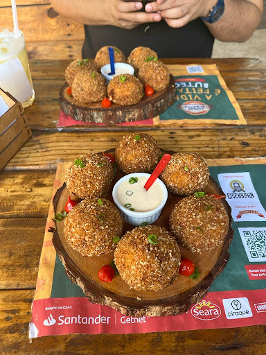 Escolhemos esse bar devido as opções vegetarianas, chegando lá o garçom nos disse que não tinha o bolinho vegetariano e, quando respondi que era uma pena, ele disse que não estávamos perdendo nada, pq o bolinho tinha uma cara horrível e falou dos ingredientes com desdém, respondi que pra ele que provavelmente comia carne, o prato não agradava, mas que pra gente era exatamente o que queríamos. Enfim, tirando essa falta de profissionalismo, tbm não tinham alguns ingredientes como maracujá para a caipirinha de maracujá, kiwi… acabamos ficando na caipirinha de limão, cerveja e porção de mandioca.