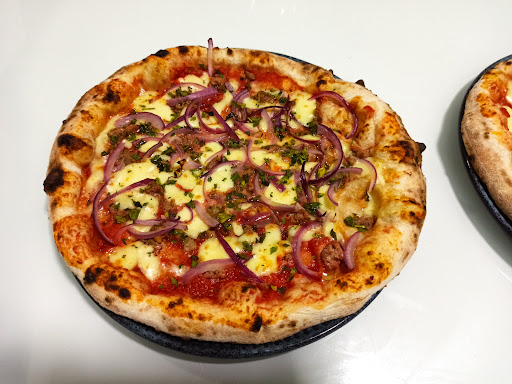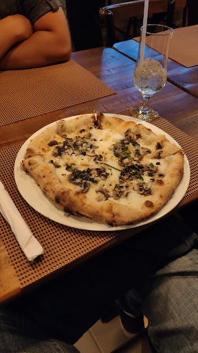 Read moreO lugar é muito bonito e agradável. Atendimento muito eficiente e simpático. Um cardápio simples, e um farto esclarecimento sobre a qualidade do molho, qiase sem acidez. A escolha das pizzas foi difícil para nós pois, não comemos carne de porco e na maioria dos sabores essa carne está presente em forma de bacon, presunto cru e peperoni. Nos restaram pouquíssimas opções. Pedimos uma só com molho de tomate e alho fatiado, que surpreendeu e uma outra com cogumelos portobello, mais simples de sabor. Estavam boas mas, nos indicaram que provavelmente, a carne de porco é o que deve dar o toque de sabor das pizzas da casa e por isso, a forte presença no cardápio. O estilo da pizza é um pouco diferente. Esperava que fosse mais crocante. Mas, agradou. De sobremesa, como gostamos demais de canollis, foi nossa pedida: de doce de leite e de pistaches. Quase sem ser adoçado, o de pistache tem creme bem azedo e não senti os pistaches. O de doce de leite, com creme menos azedo, mais suave mas, quase sem açúcar ou doce de leite. Talvez não tenhamos entendido a proposta, sei lá.... Difícil até dizer se gostei mas, não pediria novamente. Me acostumei ao sabor da ricota doce dos canollis do Franciulli, (Cantina 14 de Julho, em Sao Paulo). Enfim, se voltaremos? Sim, provavelmente a...