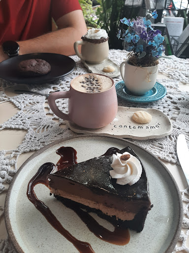 Read moreAmbiente agradável, com plantas e livros, e bom atendimento. Gostei da quiche caprese mas o café com leite gelado achei um pouco exagerado em chantilly. Certamente a intenção é deixar mais gostoso, mas senti falta da bebida, em si, que acabou sendo pouca (mesmo tendo pedido o copo grande). A única coisa que realmente incomodou bem foi o valor da porção de pães de queijo veganos. Já esqueci o valor exato mas foi algo entre R$23 e R$26, por 4 mini pães de queijo... O pão de queijo tradicional,...