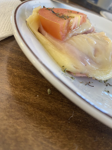 Read moreEstava vazio 10:30 da manhã (se não me engano minha mesa, depois chegaram duas senhoras e outra mesa que já estava ocupada com umas 3 pessoas, ou seja, somente 3 clientes), mas o pedido demorou 20 minutos e só veio o suco da minha filha. Vários funcionários e demorava.. ( um ficou lustrando talheres e outra colocando guardanapos no suporte). Veio meu café machiatto. Kd os Paninis? Meu Deus, como conversam! Kd os paninis? Panini veio 5 minutos após o café. E estava duro; parece que era ‘de ontem’ e foi esquentado. A tampa do Panini comi separado pq mal conseguia cortar com a faca porque o recheio ficava saindo; o restante da massa do Panini, qdo eu ia cortar, estava tão duro que a mesa ficava balançando com a força que eu fazia na faca. Tomate fatia grossa (vejam foto) e presunto tb. Não volto e não recomendo. Sugiro...
