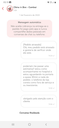 Edit: disseram que o pedido já havia sido marcado como entregue após minha última ligação (3 horas de espera). Mas o pedido nunca chegou, e como o estabelecimento já fechou, fiquei sem a entrega após toda a espera. Muito despreparo e falta de honestidade para lidar com os próprios problemas, e quem paga o pato é o cliente,...