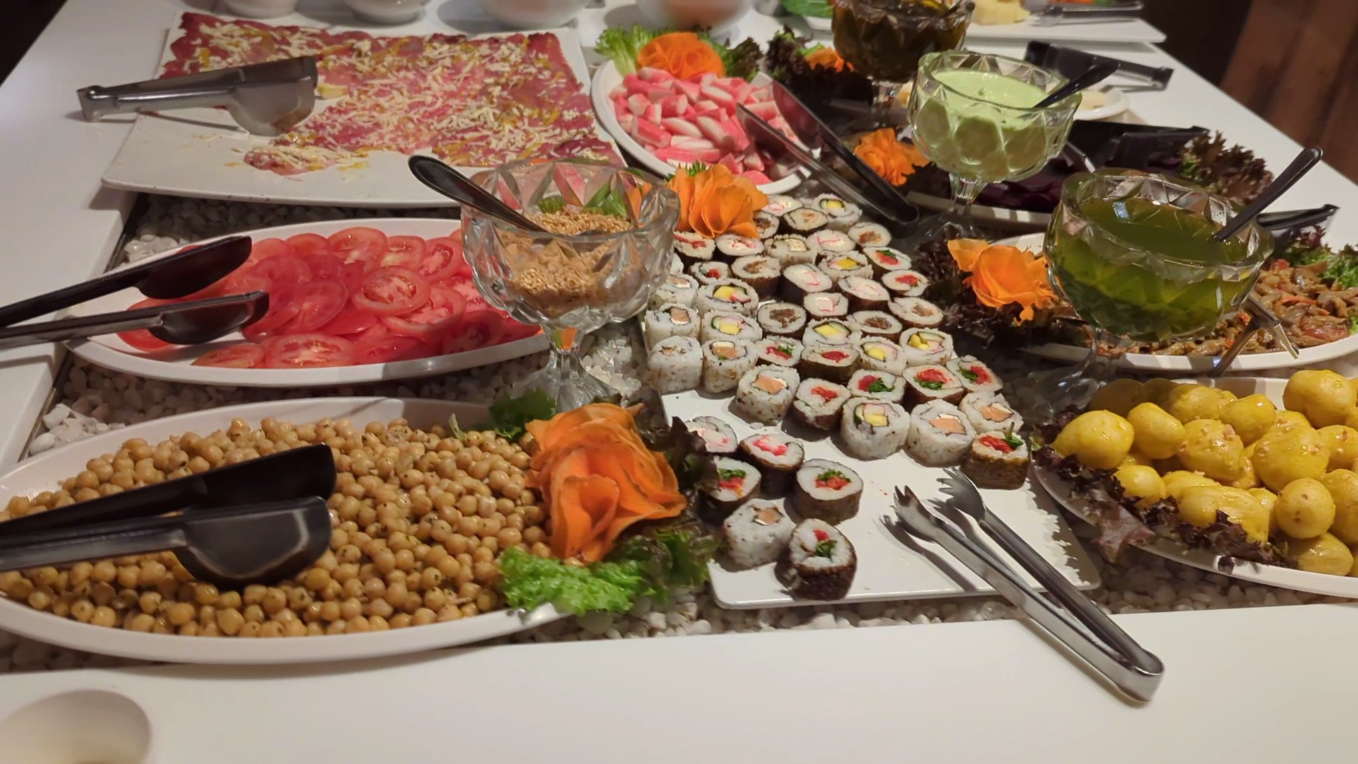 Confesso q qdo li as avaliações aqui, quase desisti de ir, mas resolvi conhecer o lugar para ter a minha opinião. Pois bem...A variedade de pratos e carnes não é grande, é razoável, mas tudo muito gostoso e bem feito. Não tive problema nenhum com garçons, fui muito bem atendida por todos. Não houve demora, bebida chegou rápido, carnes eram passadas na mesa a todo instante, só pararam de passar qdo colocamos no vermelho. Sobremesa chegou rápido, e muito bem servida. Mesas próximas sim, mas c espaço suficiente para as pessoas se deslocarem. Espaço agradável e bem decorado. Não usei o banheiro, então não posso dizer nada. O manobrista do estacionam. mto educado e competente. Cheguei em um horário bom, ainda tinham mesas. Qdo saí, estava lotado, com fila de espera, e aí sim, vi falta de respeito por parte de clientes estressados, que querem ser atendidos imediatanente, vendo que havia fila de espera, não querem aguardar e acham que os funcionários tem obrigação de dar prioridade e arrumar mesa na hora. Lamentável. Concluindo, minha experiência foi boa, e recomendo o restaurante...