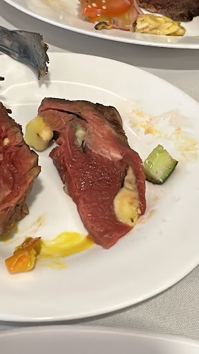 Read moreA pior churrascaria que já fui. Nunca pensei poder existir uma. Fui para conhecer, e com uma vontade de comer um bom churrasco, porém, saí de lá sem isso. Carnes de péssima qualidade, fedidas, e com o ponto péssimo. Ou era extremamente crua ou um torrão duro e seco, que não dava pra mastigar. Não consegui saber quais eram aquelas carnes servidas, mas de longe não eram carnes nobres ou aquelas comuns que conhecemos ( contra filé, picanha, maminha, cupim, costela, fraldinha, alcatra). Ouvi da boca do garçom que eles não tinham carnes nobres, como angus, ou ancho, ou wagiu (carnes que como em outras churrascarias da cidade pelo mesmo valor). A parte de saladas é precaria, sem variedade nenhuma, poucas opções. Parte de pratos quentes, lamentável, arroz mal feito, queimado e encaroçado, feijão, vaca atolada, nada haver com cardápio de churrascaria. A parte de japonês, apenas 3 tipos de sushis e mais nada. O ambiente muito mal distribuído, as mesas amontoadas umas nas outras, sem poder transitar pelo restaurante. Super apertado. Os garçons muito mal preparados, dava pra cansar de esperar e as carnes nunca vinham e quando vinham, eram sempre as mesmas. Comi três tipos de carnes, das quais eles falavam ser: picanha, alcatra e contra filé. Porém horríveis, sem sabor, sem sal, duras, secas, e mal cheirosas. Você olhava a carne no espeto e ficava se perguntando o wue era na verdade aquela carne, e não dava vontade de comer. Lamentável a experiência que eu e minha família tivemos. Comemos melhor em restaurantes mais simples da cidade. A propaganda é só enganação. Falam demais e oferecem muito pouco. Pude ver ao nosso redor outros casais reclamando e inclusive na hora de entrarmos, um casal estava saindo e reclamando que já foram em churrascarias melhores. Ah, sem contar a bananinha, que veio depois de um século que pedimos, verde, e sem açúcar e canela. E ainda colocaram apenas uma em nossos pratos. Batata frita e polenta, nunca passava, pedi várias vezes pro meu filho e colocaram bem pouco. Pedi polente frita pra mim, colocaram 1 pedacinho apenas no meu prato. Ridículo. Me senti super lesada, comi super mal, e fui super mal atendida. Jamais voltaremos. Doeu o coração ao pagar a conta....