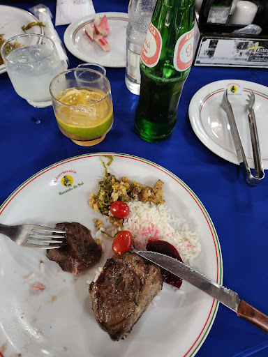 Read moreChegamos quando o restaurante estava vazio, fomos literalmente os primeiros clientes desse sábado e pensei que fosse por estar cedo. Depois de alguns minutos entendi, percebi que tudo lá deixava a desejar. No buffet grande parte das comidas quentes eram requentadas e nas saladas e conservas a maioria estava muito velha e ressecada, ficamos até com medo de comer os frutos do mar e embutidos, por estarem visivelmente velhos. Além disso, no churrasco todas as carnes foram servidas bem bem passadas, algumas estavam frias e bem ressecadas, algumas sem sal e haviam outras que eram incomiveis. Uma pena pensar que os bois servidos ali morreram a toa. O serviço dos garçons tbm não foi dos melhores, alguns trabalhavam bem e realmente pareciam dedicados, mas haviam alguns outros que estavam com a cara completamente fechada e responderam nossas perguntas de forma grosseira. Nos primeiros cinco minutos já havíamos percebido que não valia o valor cobrado, porém já tínhamos servido um primeiro prato do buffet e não havia como voltar atrás, por isso decidimos continuar lá até estarmos satisfeitos, mas infelizmente não o recomendo...