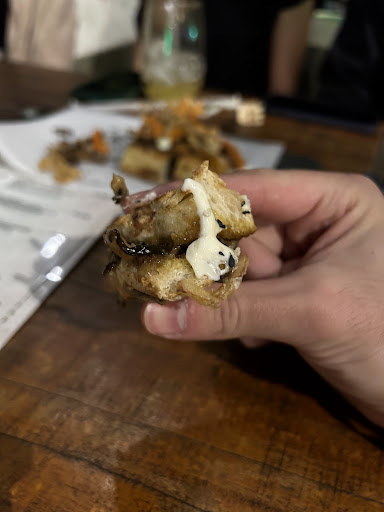 Read moreFomos conhecer o restaurante em uma sexta feira pela promoção do Restaurant Week. Gostamos muito. Comida muito boa, ambiente agradável e bom serviço. COMIDA: Pedimos o menu da promoção para conhecer o restaurante. De entradas pedimos o taco frito com purê de cebola roxa e cupim desfiado (muito bom) e o Aguachile de camarão com uva e maçã verde (que também estava ótimo. Pratos principais fomos de baião de dois, que apesar de um prato muito simples estava muito gostoso e bem feito, e de Rigatoni com molho de queijos e cogumelos, que também apesar de simples estava muito bom. As sobremesas (tiramisu e tartelete de caramelo salgado) foram o ponto alto do almoço (mesmo tendo gostado bastante das demais estações). As duas opções combinaram muito com o menu e estavam muito gostosas. SERVIÇO: Fomos bem atendidos mas não sou muito fã do sistema de cadastrar os clientes e cartão comanda, por isso a nota 4. Quando chegamos fomos chamados por um funcionário para sermos cadastrados (informações simples que o garçom poderia pedir na mesa) e depois, mesmo com pouca gente no restaurante (por conta do sistema de comandas), ainda tivemos uma leve fila para pagar. Acho que o restaurante pode rever essa parte da jornada para a experiência fluir melhor. De resto, o serviço foi impecável. Fomos bem atendidos e os pratos vieram rápido e sem erros. AMBIENTE: Lugar muito bonito com área aberta embaixo de árvores altas e mesas bem espaçadas. Muito legal.