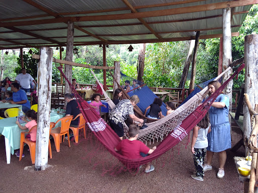 É uma ótima ideia, um restaurante num sítio, no meio do nada, onde vc pode levar suas crianças para uma área verde com bichinhos, um amplo espaço, uma variedade no buffet de comida predominantemente caipira, com som ao vivo. Sobre a comida, tem uma mega variedade, mais não é muito gostoso, nao sei explicar, mais como é de costela, tinha costela assada e estava boa, a parte das massas é legal, mais acho q a atendente poderia ser mais dinâmica e poderia ter queijo ralado, a parte do hamburguinho é legal só que tem muito nervos na carne. O serviço eu não gostei de verdade, os garçons não te atendem, levam sua ficha, demora pra trazer sua bebida, acho que nós mesmos podíamos ir até o balcão e pegar as bebidas, seria mais prático e rápido. Ah uma coisa que eu gostei e achei bem legal, tem uma salinha que imita um cômodo num rancho mesmo, e tem fogo a lenha e tem café e um pão doce maravilhoso quentinho com leite condensado. Aí tem atrativo como as araras e o tucano, as crianças gostam. Tem um escorregador com espuma, que é mais voltado pra crianças maiores, bem diferente TB, o som ao vivo é legal. No geral vale a experiência. Pra quem come bem, vale a muito a pena, pois vc paga e o buffet fica livre desde a hora que vc chega até a hora que fecha. Minha experiência ruim, tem passeio a cavalo em frente e disseram que não faz parte do restaurante, mais criança vê e criança quer andar, foi cobrado 30$ por uns 20 min, fui eu e minha filha com um moço guiando o cavalo, mais infelizmente esse cavalo assustou com alguma coisa e nós duas caímos do cavalo, graças a Deus não aconteceu nada de grave, mais poderia ter acontecido, então talvez minha impressão ao restaurante de primeira vez não foi tão boa até pq fiquei bem assustada, sei e disseram que não tinha vínculo okay mais não valeu pelo susto. Vai um dica de aprendizado, você querer andar e vc cair okay mais quando uma criança quer andar e ela corre o risco de cair, não leve a criança mesmo com um moço guiando o cavalo. Outra coisa um pouco desagradável mais que infelizmente aconteceu foi as caixas de gordura começarem a vazar no meio do buffet, e as funcionárias ficarem tentando desentupir com a mão e tals o cheiro, essa parte não foi legal, sei que imprevistos acontecem. Para chegar ao local sugiro ir por dentro da cidade. Sobre o preço, achei justo o valor de 75$ tendo em vista que vc pode ficar mais de horas comendo, as bebidas são mais caras que é o esperado, aí tem a taxa de serviço do garçom que não valeu a pena e a música, no final fica caro, pq vc não senta almoça e vai embora, vc fica e consome mais bebida enfim. Ah tivemos que pagar para estacionar 25$ senão tem que estacionar bem antes do local. Acho que é isso, mais é legal. Pq o local tem bastante árvore é bem roça mesmo. Não...