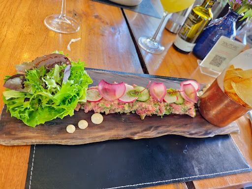 (Edit at the end.) I have been to this restaurant multiple times and every time I have been blown away by the amazing food. Every single thing I have tried—the starters, appetizers, main dishes, desserts, cocktails—it's all been great. This time, my husband and I got the steak tartar "straws", the octopus/mini potato appetizer, salmon with beetroot risotto, and linguine carbonara with shrimp, along with the dessert trio to share. The Moscow mule was also very well done, slightly spicy, and seemed like it was made with fresh ginger. The staff are friendly and attentive. The atmosphere is warm and isn't too loud. Without a doubt, I would recommend this restaurant to others.