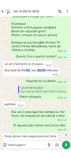 Bom dia. Eu sempre comprava (uns três anos atrás) pizza com a D' Talia, parei de comprar por que toda vez que eu escolhia o sabor portalho vinha faltando o alho, e ele quem dá o sabor. Eles sempre se desculparam e nós ficava. Passei a comprar na Brasil outros sabores e não tive problema. Ontem voltei a comprar na D'Talia o sabor portalho fiz o pedido pelo whatsapp justamente para deixar registrado e a pessoa não esquecer de colocar o alho, ainda reforcei quero a pizza portalho e por favor não esqueçam o alho, a pizza chegou começamos a comer e novamente não veio o alho, perdeu todo o sabor da pizza. Entrei em contato por whatsapp, mandei foto e um vídeo da pizza, a pessoa pediu desculpas e ofereceu uma pizza brotinho com o alho, quando eu fui escrever que seria aceito a pessoa apagou a mensagem e disse que se eu quisesse o motoboy iria levar o alho para mim. Péssimo atendimento pós venda, quem é o cliente que compra um pizza falta o alho e depois vai esperar o motoboy levar para colocar em cima de alguns pedaços de pizza que já estavam frios? No mínimo seria de fato oferecer outra nem que fosse menor. Enfim erros acontecem somos seres humanos, mas toda vez o mesmo erro com o cliente aí...