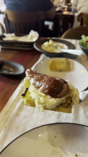 Read moreQuantidade não é qualidade, infelizmente. Massas moles demais e carne velha. Pelo preço (150 por pessoa) é inadmissível. O atendimento foi a melhor parte da nossa visita (cordial, rápido e eficiente, nota 10 mesmo); o ambiente também é bacana. Sim, as massas foram pedidas al dente e isso foi enfatizado. As carnes vieram no ponto pedido (mal passadas) mas alguns pedaços vieram com um sabor estranho (um toque azedo e um odor leve de queijo), que, na minha experiência, identifico como cortes guardados por tempo demais. Os molhos são um tanto insossos (sal a gente coloca, mas falta algo além), o brodo tem gosto de caldo Knorr e os capeletti são massudos. O molho funghi é feito com funghi chileno (não é o fim do mundo; aviso porque sei que tem quem não goste). A tábua de legumes também estava sem tempero nenhum. Das massas e molhos salvaram-se os gnocchi e o molho de manteiga e sálvia. Dos acompanhamentos, o queijo a dorê achei muito gostosinho. As saladas são só folhas para temperar no prato e uma maionese simples. De novo, não é nenhum crime, mas eu esperava mais. O galeto estava bem temperado, mas o peito um pouco seco. Enfim recomendo TALVEZ para quem não se importa com o ponto do macarrão, e para comer só o rodízio simples (sem churrasco). Mas ainda acho caro demais para o...