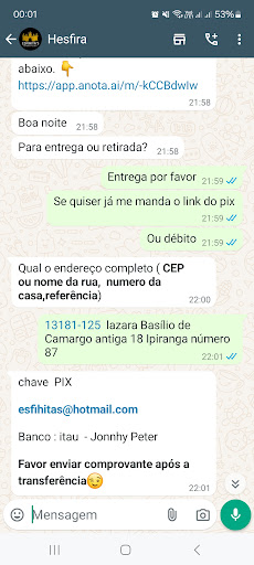 Eu e minha esposa pedimos pelo ifood o qual mostrava que o local seria a 2 km da nossa casa em Hortolândia, porém o pedido demorou quase 1 hora e meia pra chegar, agora que vi que o local é em outra cidade e eu não moro na divisa, tentamos contato informaram que tiveram problemas com o motoboy, minha esposa cancelou e após 2 minutos o entregador chegou, ficamos com dó de mandar de volta e aceitamos fizemos o pagamento e assim que estávamos entrando em casa o entregador disse que seria a encomenda errada, qdo voltei ele simplesmente abriu a caixa que tinha me dado pediu pra eu pegar uma esfiha e colocar na minha encomenda como brinde... Achei estranho, mas não discuti peguei a esfiha minha encomenda e entrei... Chegando na cozinha contei e vi que o não havia esfiha sobrando (ou ele comeu ou nem seria o meu pedido TB), as esfihas que vieram bem feias de aparência, já meio frias... As de carne estavam meio esbranquiçadas... Sugiro que no mínimo coloquem selos nas caixas pois além de feio ainda aberto não dá... Provavelmente os motoboys podem estar sabotando a empresa por algum motivo tb... Espero que resolvam mas eu não...