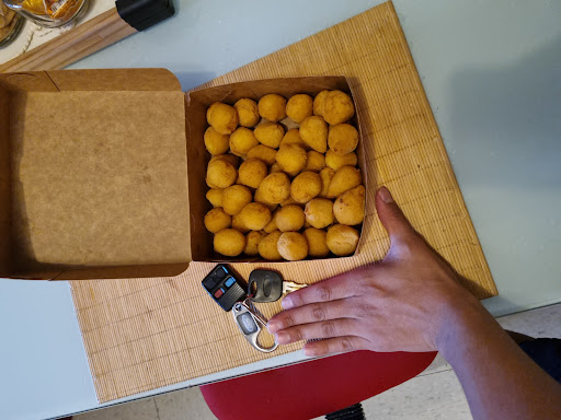 Read moreO cidadão está ajudando a loja ao invés de prejudicar. Acho que vc é um concorrente heim? Kkk..., tinha que colocar uma moeda maior que o salgado. Outra..., dizer que foi lesado? 100 mini salgados por R$ 17,99, queria o quê? Salgados tamanho de nota de 100? Os salgadinhos são pequenos, mas valem o quanto custa, e mais..., são deliciosos! A sua foto mostra que são sequinhos. Boa propaganda vc fez. Não colou essa dor de cotovelo. Estamos acostumados a exploração e quando nos deparamos com uma deliciosa opção como essa, vem um e se sente lesado. Falar nisso, deu vontade kkk..., vou buscar um cento, estou afim de ser lesado por 100 coxinhas iguais a essa da...