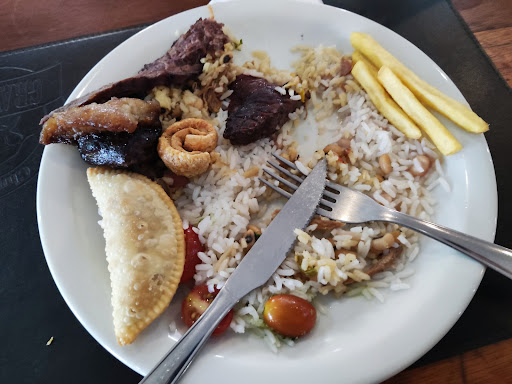 Read moreEstava de passagem pelo local e parei para almoçar. O ambiente é descontraído, limpo e bem localizado. Atendimento: Um dos garçons era muito atencioso e educado. O outro, que servia as carnes do rodízio parecia que estava de mal humor. Quanto a comida do bufê, nada excepcional, mas estava saborosa. As carnes do rodízio não estão aprovadas. Por parecer um local que não há muita circulação de pessoas para o almoço, elas acabam ficando muito tempo assando e estavam com aparência de queimada. Meu marido não gostou. Eu não como então não sei exatamente como estava. Eu pedi um salmão assado, não estava ruim mas não é nem de longe o melhor que já provei. Se for comer no local, Minha recomendação é que pegue por quilo e escolha as carnes que estiverem melhor, na...