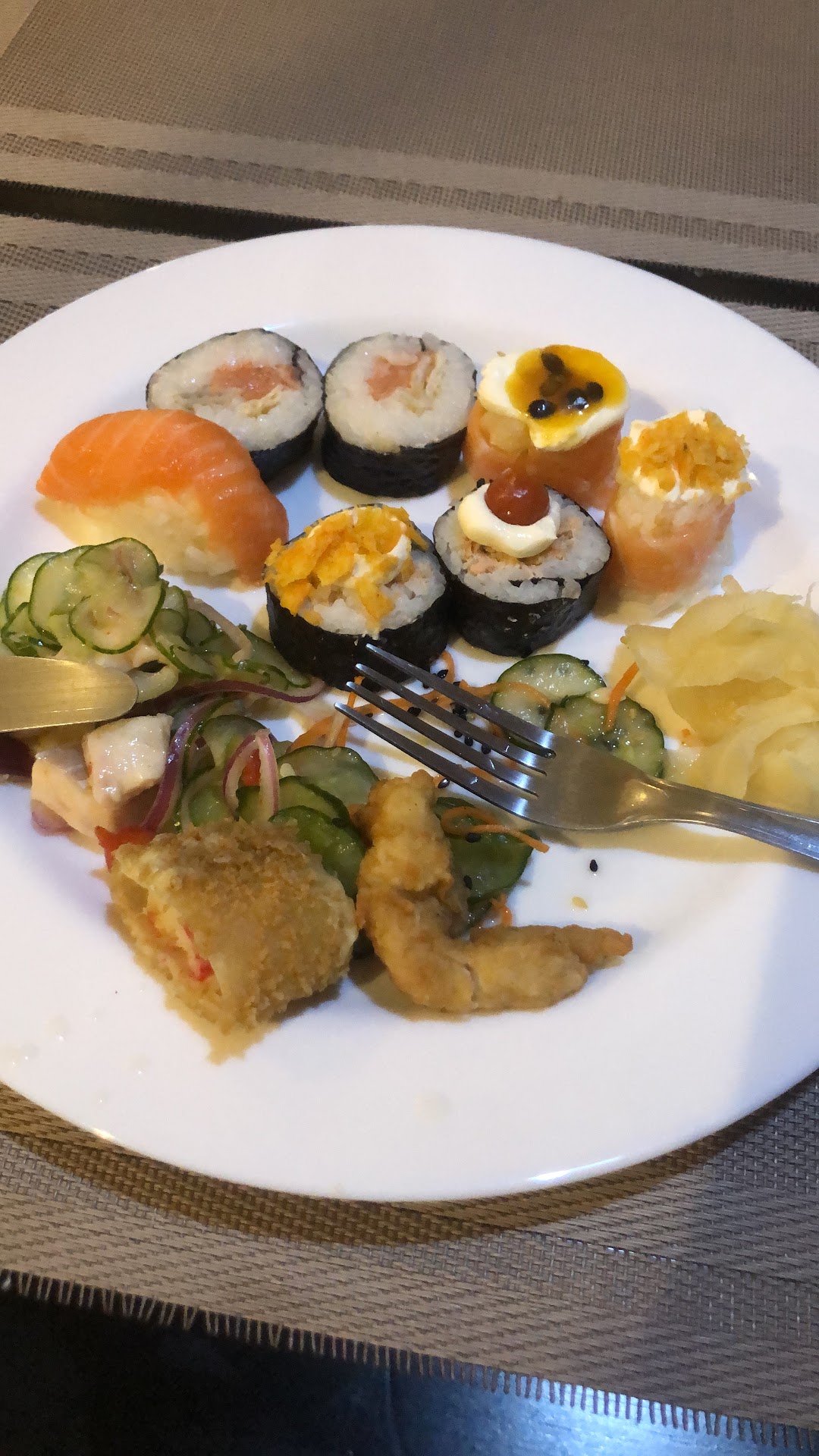 O salmão grelhado é muito bem feito, ele derrete na boca, não é seco, foi feito da forma correta, o bolinho de camarão é uma perdição, pois bem bastante cream cheese empanado, e falando de Cream cheese, eu fiquei feliz com o rolinho primavera, pois não sou muito fã, mas esse estava muito bom, muito mesmo, ele era recheado com cream cheese, foi a primeira vez que eu provei algo assim, e amei muito ❤️