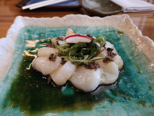 Em 06/01/24 eu e minha esposa chegamos às 19h com reserva prévia feita pelo Google e fomos imediatamente direcionados à mesa. Com cerca de 1 min o garçom nos trouxe um par de Oshibori, que até então não fazíamos ideia do que se tratava. Nunca tínhamos visto aquilo e tivemos que pesquisar no Google Alguns minutos depois o garçom retornou e perguntou se gostaríamos de pedir as bebidas, mas não tínhamos recebido o cardápio ainda, então o solicitei. Ao trazer o cardápio físico, o garçom explicou que também havia um QR Code para o cardápio digital colado atrás do frasco de álcool em gel (de quem foi essa ideia???). Importante avisar os clientes ao se sentarem à mesa, ainda mais se forem "novatos" como nós Também ficamos bastante curiosos com um pequeno recipiente cerâmico preto em forma de bule que já estava na mesa quando chegamos. Sem identificação ou explicação, depois descobrimos que era o molho de soja. Após essas desventuras iniciais, posso dizer que o serviço como um todo foi impecável: garçom sempre atento, pedidos chegando rápido e todos muito educados. O banheiro masculino é uma PORTA INVISÍVEL!!! O garçom já conhece o problema que isso traz, me acompanhou até parte do caminho e me explicou onde era a porta, que quase não é possível ver, pois é da mesma textura da parede, não tem identificação, batente ou maçaneta aparente; parece uma entrada secreta.