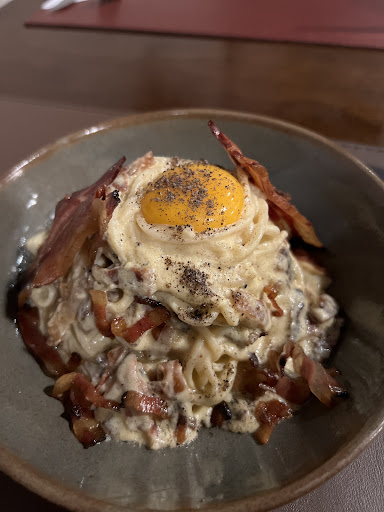 De prato principal pedi uma macarrão carbonara. O creme de ovos parecia conter creme de leite, a massa não estava al dente e o guanciale era muito salgado (nunca comi guanciale, então pode ser apenas minha percepção). Senti que o prato deixou a desejar.