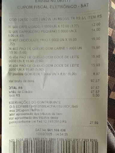 Minha primeira experiência no local foi bem delicada Fui com amigas e fizemos o pedido no balcão como orientado. Ao solicitar minha NF percebi que estava sendo cobrado um acréscimo de 10% em todos os produtos solicitados. Ao questionar o que se referia isso, fui informada que seria a taxa de serviço. Mas qual o sentido de cobrar taxa de serviço se o mesmo não é realizado? Não sou atendida na mesa (preciso ir até o caixa fazer o pedido) e fui retirar o pedido no balcão (novamente nao sou servida na mesa). Não faz sentido essa cobrança, ainda mais sem perguntar se desejo pagar por isso ou informar no cardápio ou alguma comunicação no local.