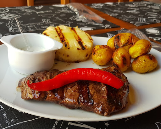 Os alimentos estavam saborosos, a carne e os acompanhamentos estavam no ponto certo (conforme meu pedido), as batatas assadas estavam demasiadas salgadas para o meu paladar, mas pode ser apenas uma questão de gosto.